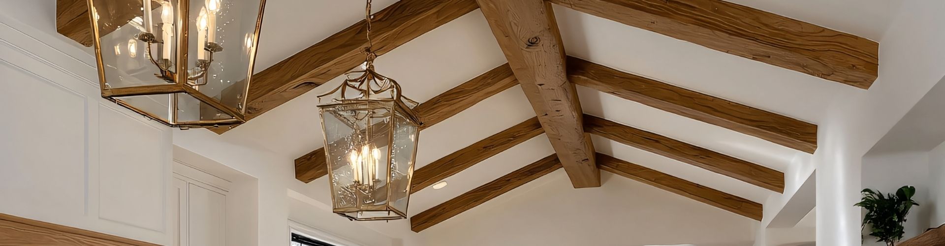 Faux beam installation works on many ceiling types, including flat ceilings, vaulted ceilings, and some tray ceilings. A carpenter will first check ceiling structure, existing lighting, and any mechanicals to determine how box beams can be securely attached. In some cases, small adjustments to framing or electrical are recommended so the beams sit correctly and look proportionate in the room.